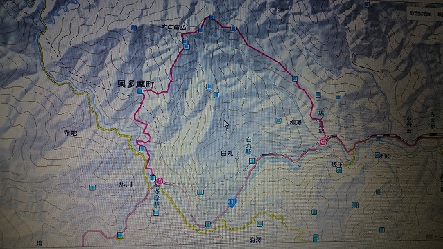 奥多摩駅⇒本仁多山の斜面が急でした。