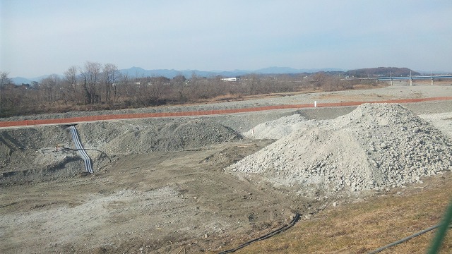上流の護岸工事現場。