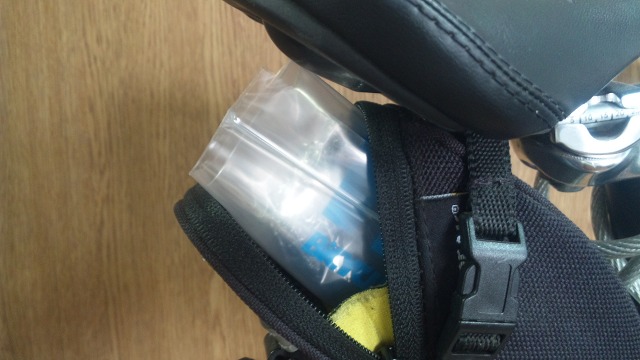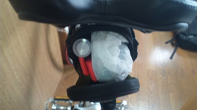 やむなく、スペアチューブはレジ袋で続行。
