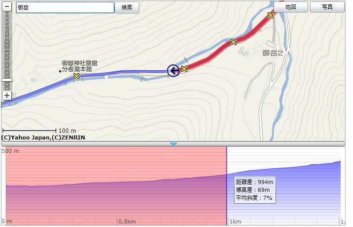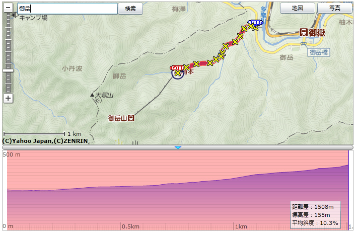 上:今回の登坂距離 下:御岳ルート全体