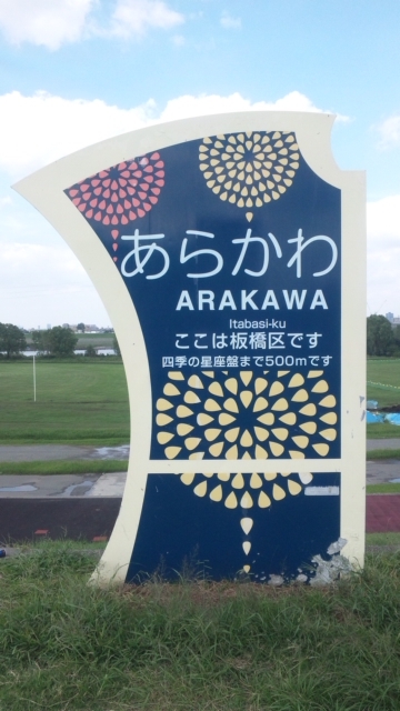 荒川の看板は各場所ごとに