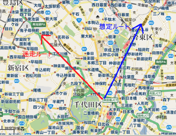 皇居から上野方面へ向かうはずが
