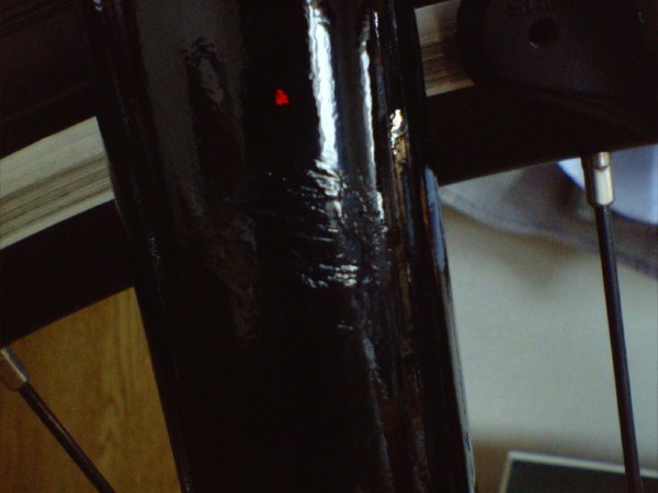 車体をよくみたら、他にもブレーキコードが車体と擦れて、