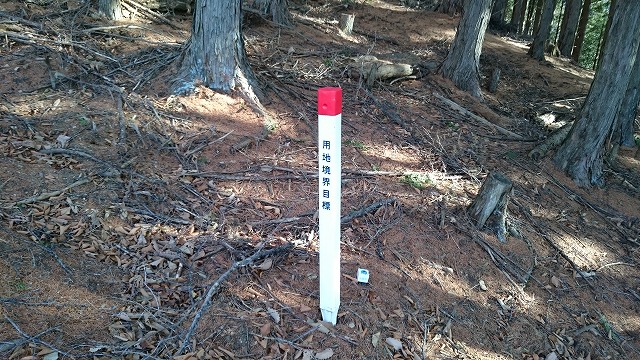 この赤い印のポール(用地境界目標)を