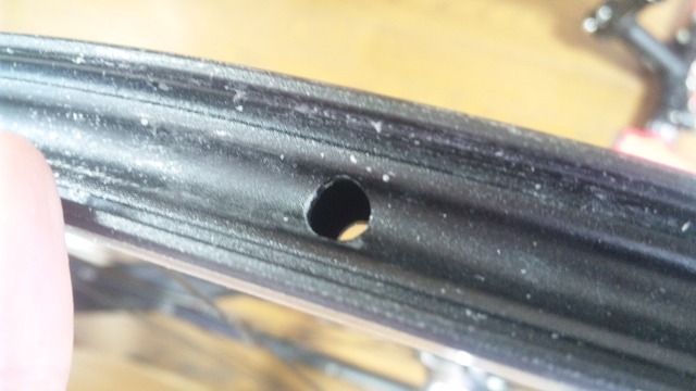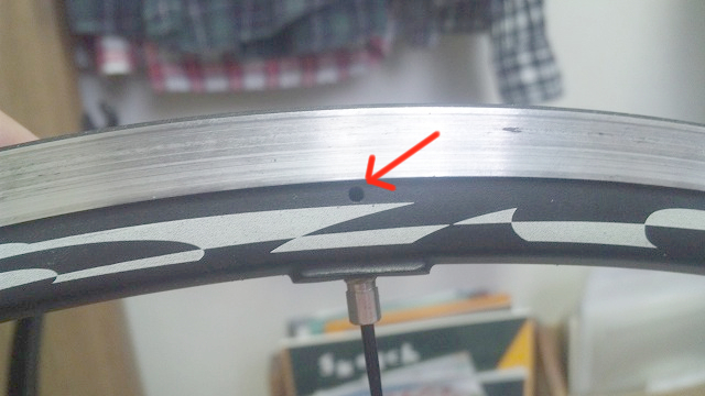 リム横の小さな穴から空気が漏れています。