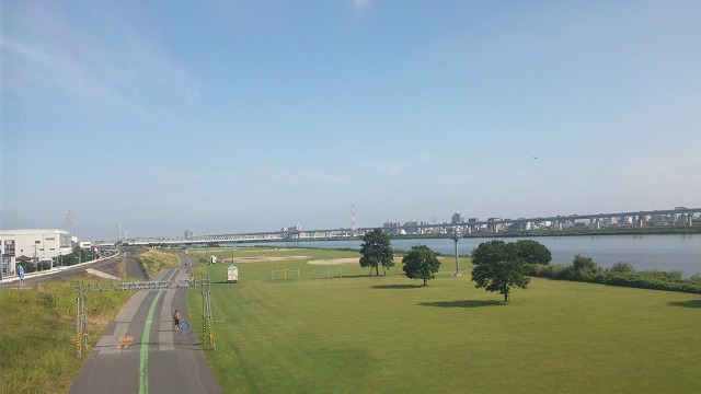 まだ残暑が酷く、多摩川土手で