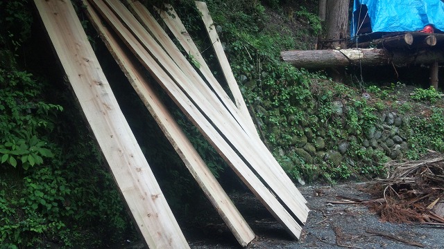 途中に木材搬出場みたいな