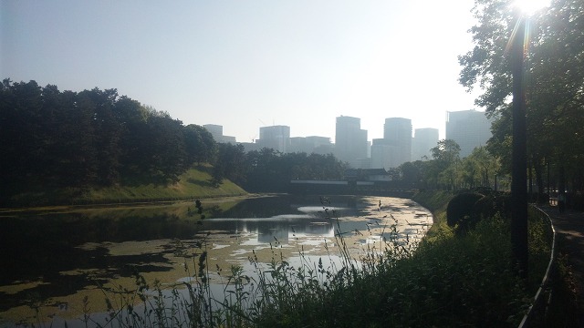 早朝の皇居のお堀。