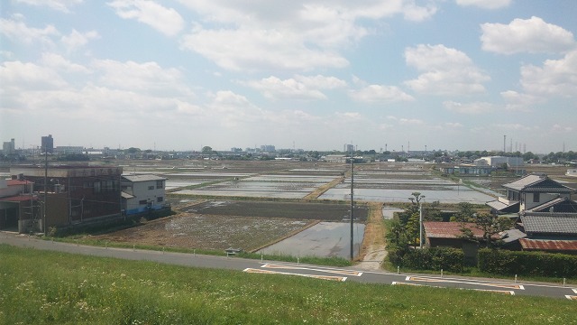 田んぼに水を張り、稲を植えて