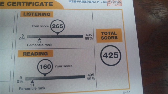 | 実施日 | LISTENIG | READING | TOTAL SCORE |