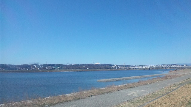 多摩サイは、羽村堰まで富士山が