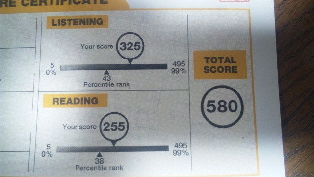 | 実施日 | LISTENIG | READING | TOTAL SCORE |