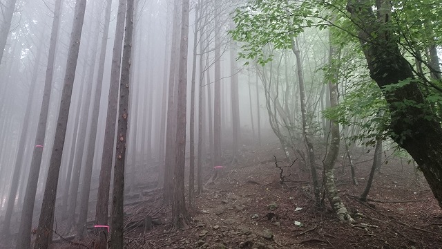 鷹ノ巣山まで、ルート印(赤リボン)が少なく、